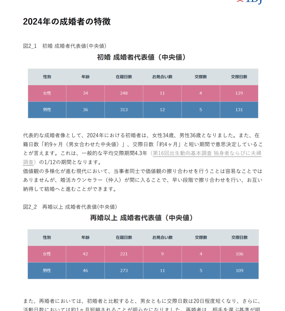 IBJでは、日本で最も大きな婚活会員データベースの分析結果を成婚白書で毎年公開しています。